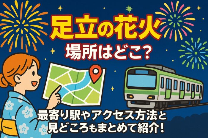 東京の夏を彩る「足立の花火2025」は、毎年多くの観客を魅了する人気の花火大会です。 初めて訪れる方は、「打ち上げ場所はどこ?」「どうやって行けばいいの?」といった疑問を持つことも多いはず。 この記事では、足立の花火の開催場所や最寄り駅をはじ... -