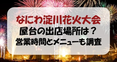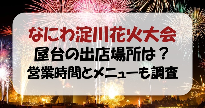 なにわ淀川花火大会の屋台の場所は、メイン会場、西淀会場、協賛観覧席内に出店され、大体15時頃〜21時頃まで営業しています。