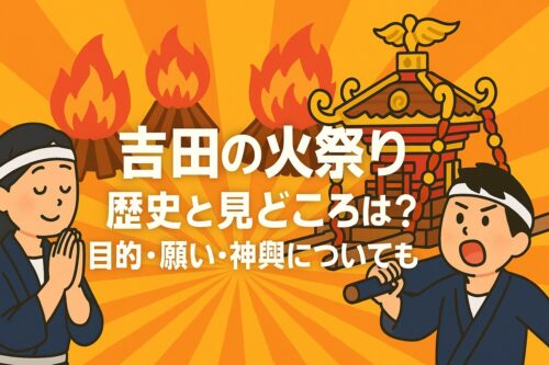 この記事では、吉田の火祭り2025の歴史や目的、見どころとなる神輿の迫力ある様子や込められた願いまで、初めて訪れる方にもわかりやすく丁寧に解説します。